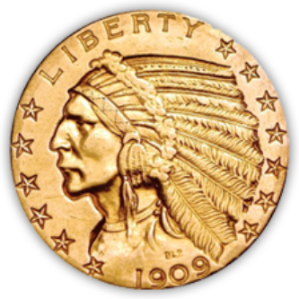 Designed by Bela Lyon Pratt, the $5 Gold Indian is one of the most beautiful and unusual coins ever minted in the U.S.. It's the only $5 gold coin minted with an incuse design. This means that the designs are sunk into the metal rather than raised above. With nearly a quarter ounce of gold and only twenty-four different coins in the series, they offer an excellent value.